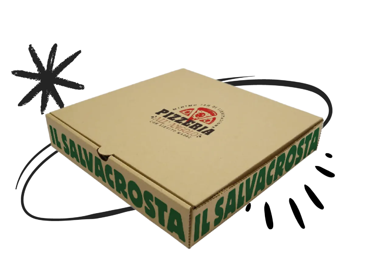 Un contenitore 100% naturale e biocompostabile. Mantiene la pizza