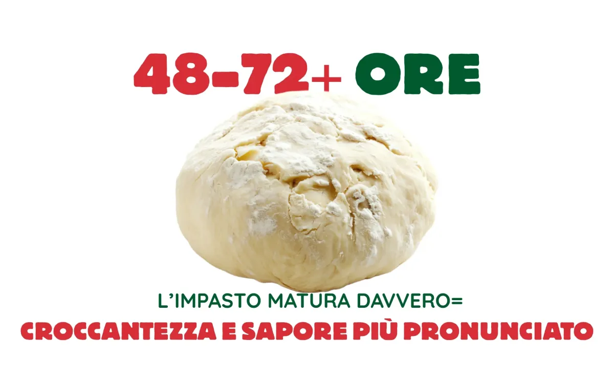 l nostro impasto riposa minimo 72 ore, arrivando fino a 120 ore.